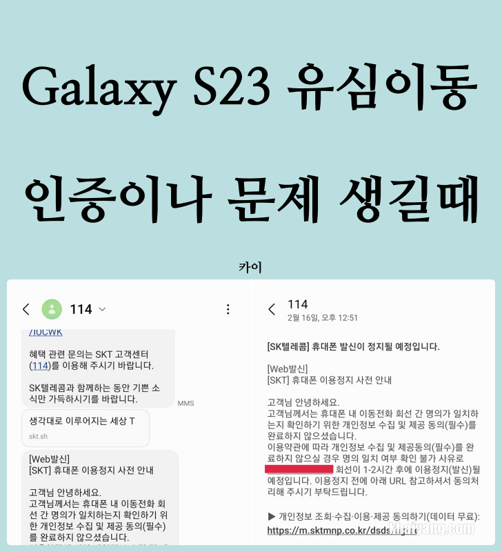 갤럭시S23 유심이동시 꼭 문자 확인! 개통, 인증, 정지 문제(eSIM)