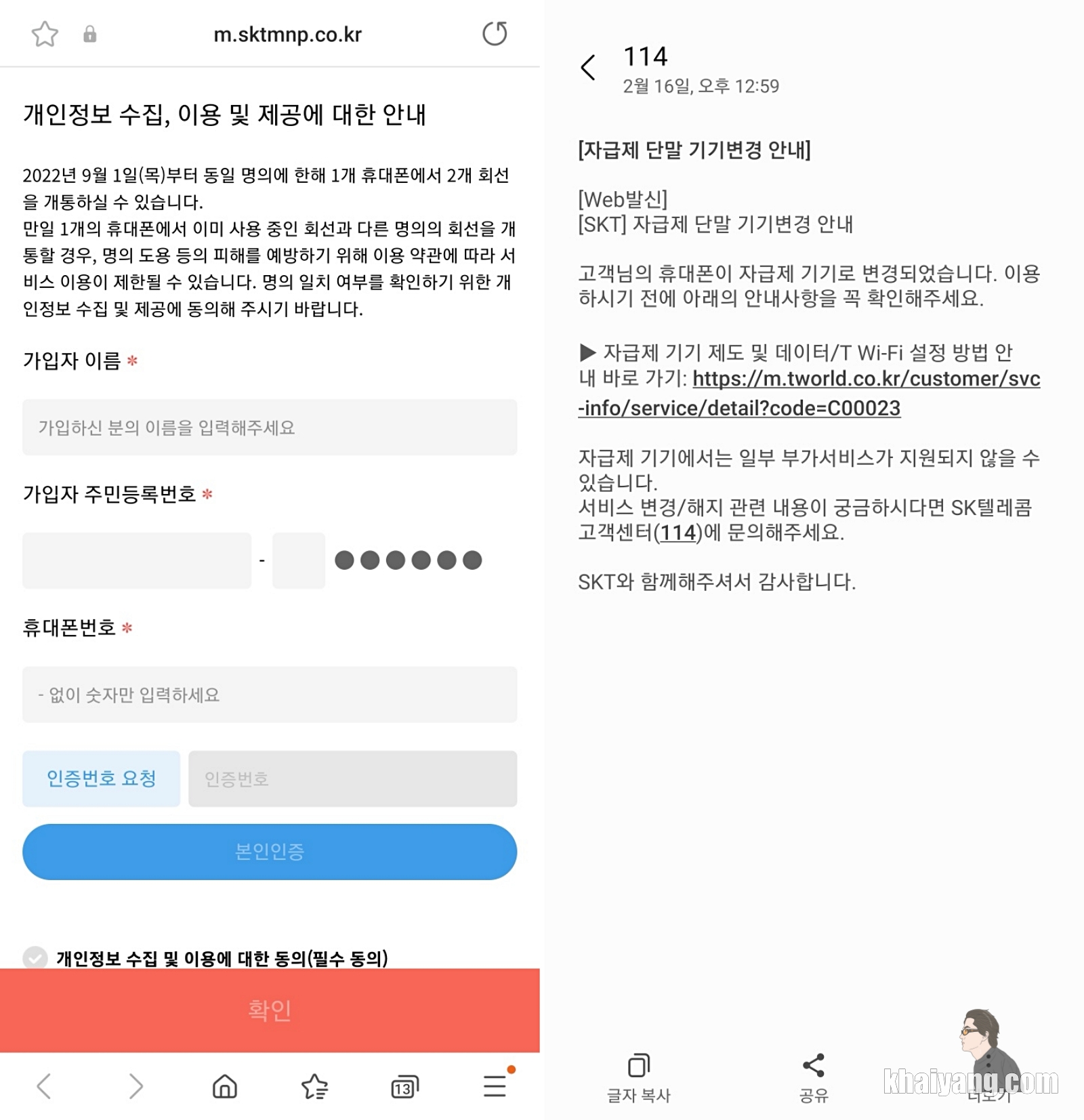 링크 클릭해서 들어가면 가입자 정보, 주민등록번호, 휴대번호를 입력해서 인증을 받아야 하는 과정이 있습니다.