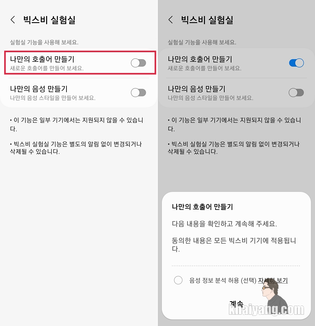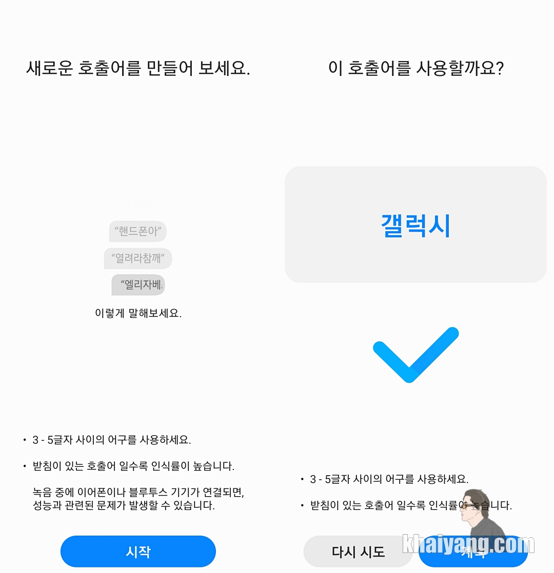기존에는 하이 빅스비, 빅스비로 고정되어 있던 호출어를 이제부터 자유롭게 만들 수 있습니다.