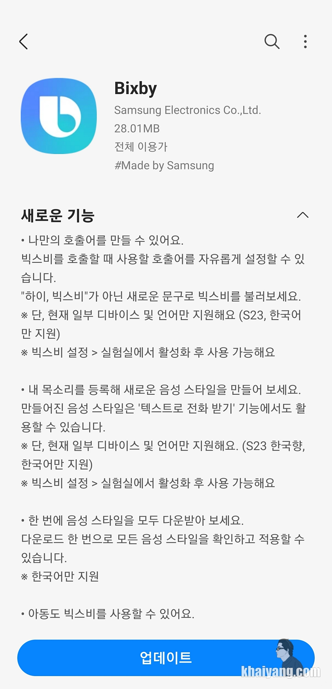S23 유저들은 갤럭시 스토어에서 업데이트를 확인해 보면 빅스비 관련 업데이트가 있는 것을 확인할 수 있습니다.