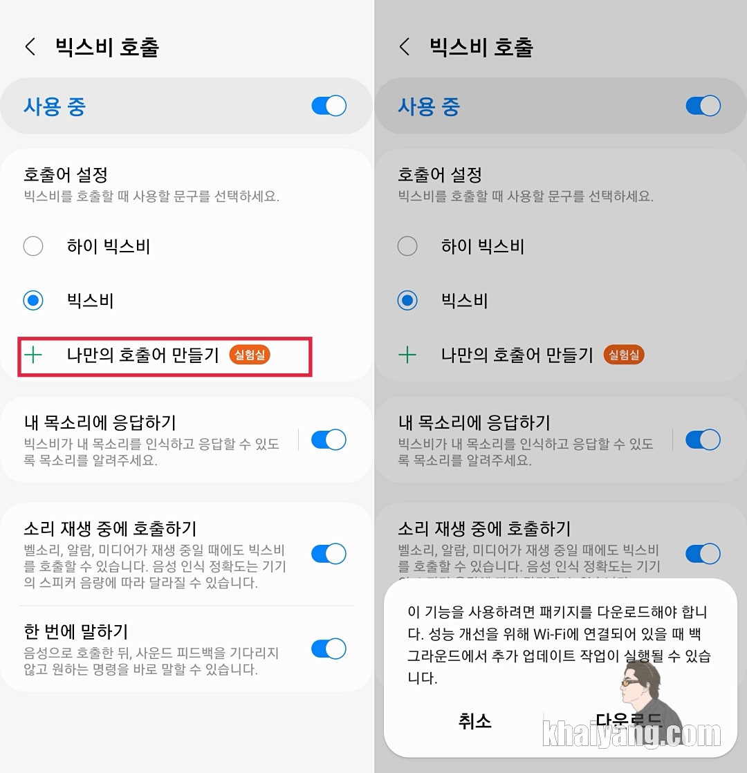 기존에는 하이 빅스비, 빅스비로 고정되어 있던 호출어를 이제부터 자유롭게 만들 수 있습니다.