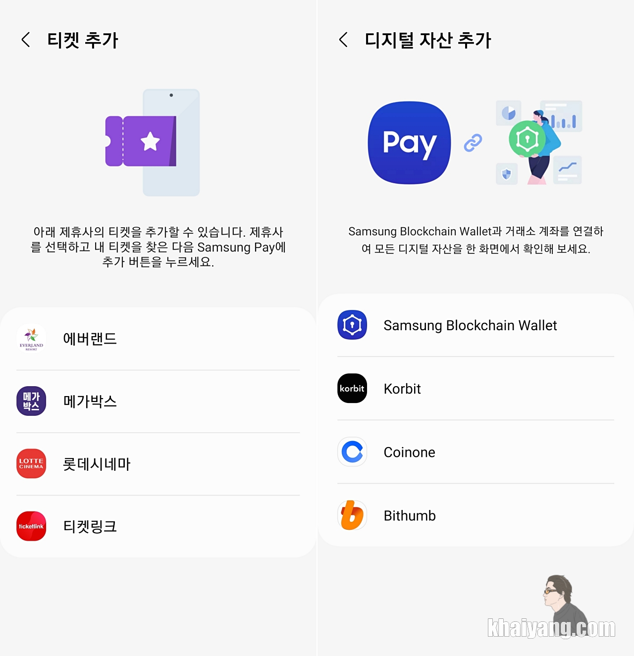 그래도 삼성이 블록체인에는 빠르게 움직이고 있어서 여전히 업비트가 빠지긴 했지만 코빗, 코인원, 빗썸 등 대부분의 국내 디지털자산 거래소를 지원하고 있습니다.
