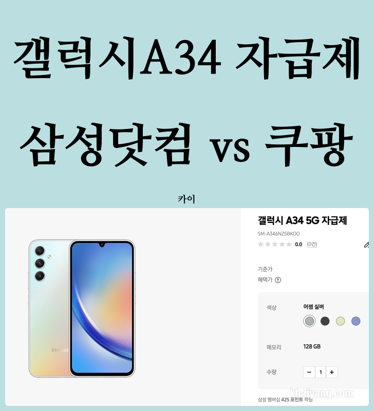 갤럭시 A34 5G 자급제 공기계 어디가 저렴할까? 삼성닷컴 쿠팡