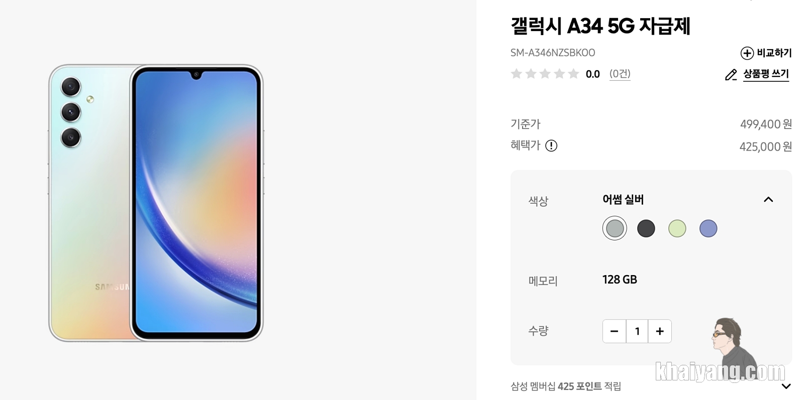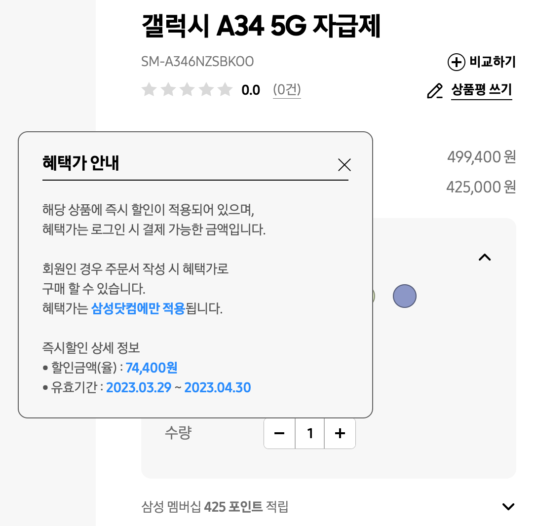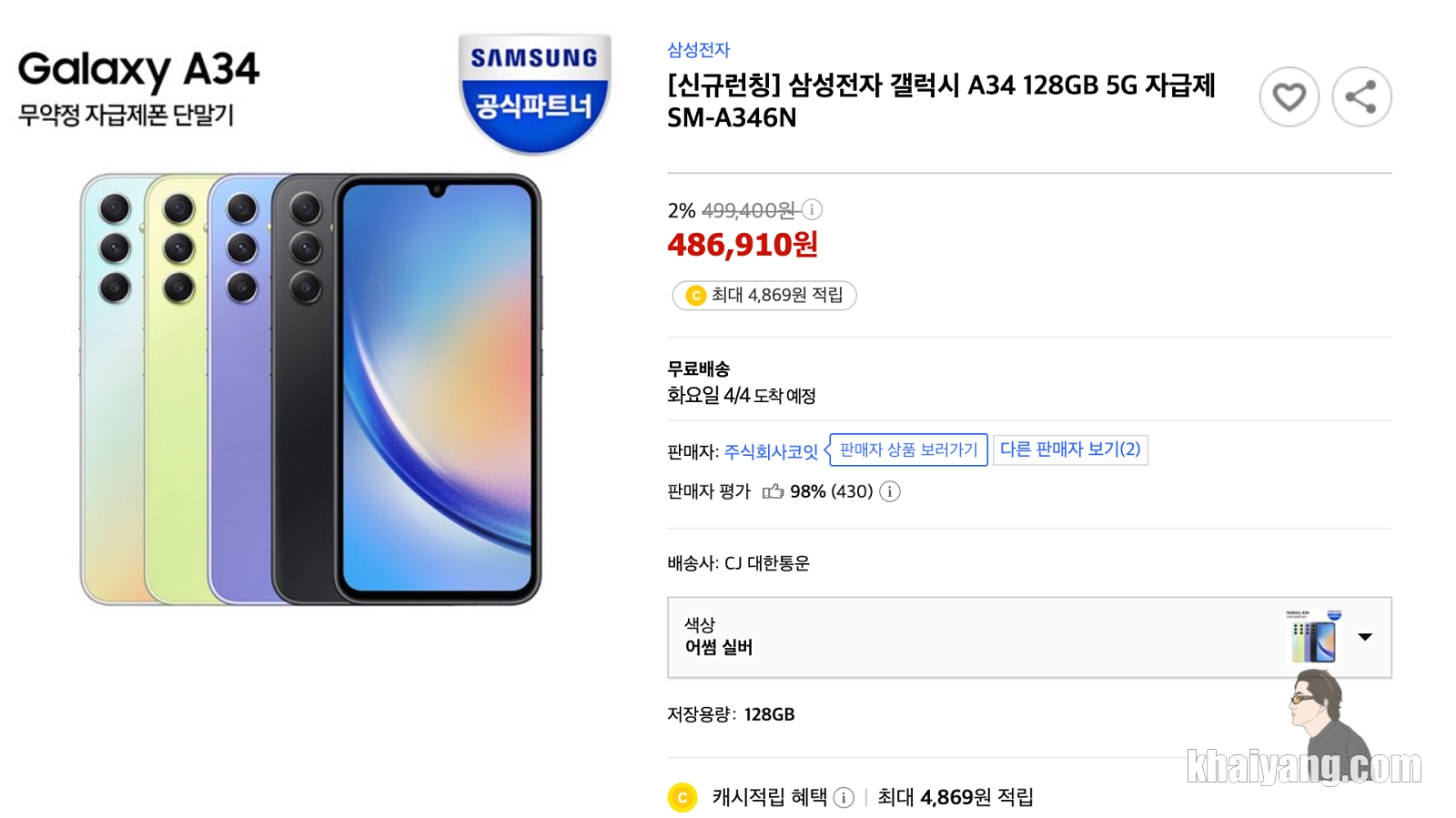 갤럭시 A34 5G 자급제 공기계 어디가 저렴할까? 삼성닷컴 쿠팡