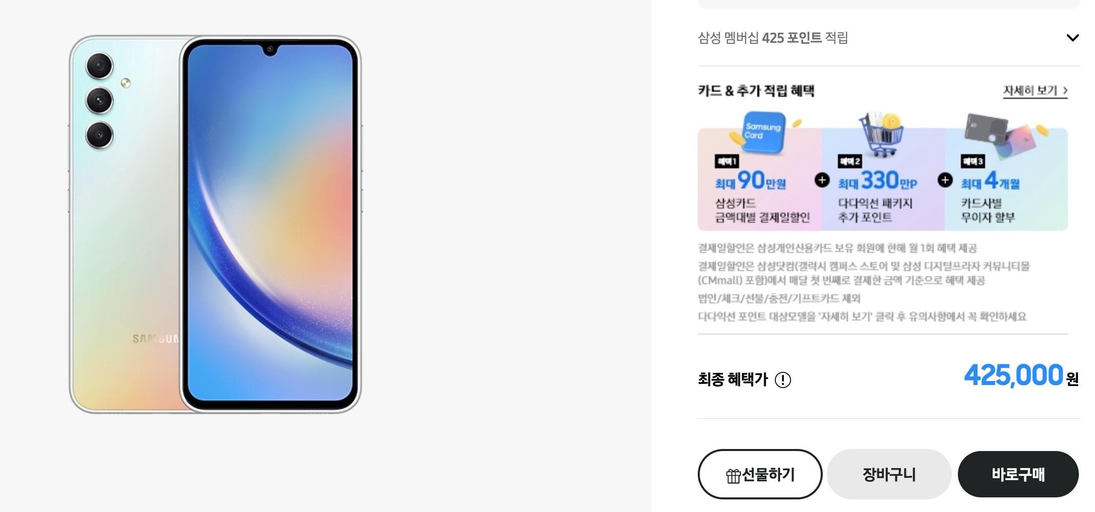 거기에 삼성 멤버십 425 포인트 적립을 받을 수 있습니다.