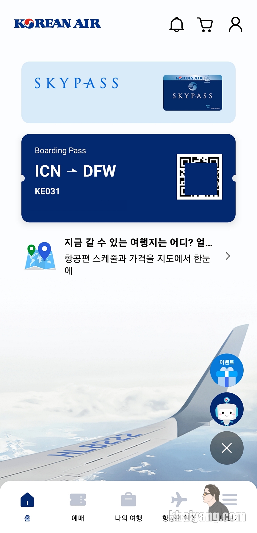 이렇게 탑승권이 저장이 되고 삼성페이를 열면 대한항공 탑승권이 저장 되어 있는 것을 볼 수 있습니다. 이제부터 언제 어디든지 삼성페이를 열면 바로 바로 탑승권을 확인할 수 있습니다.