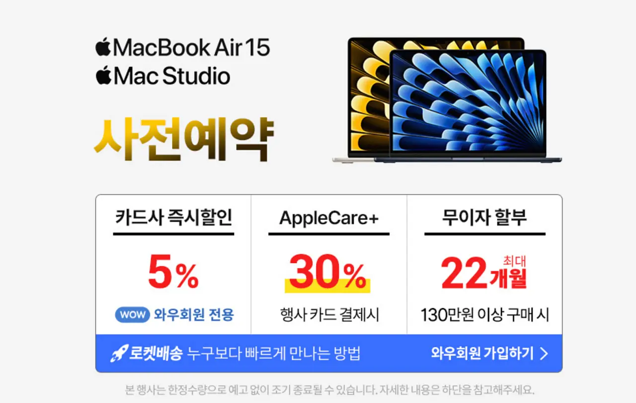 2023년형 맥북에어 15인치, 맥 스튜디오 쿠팡 사전예약