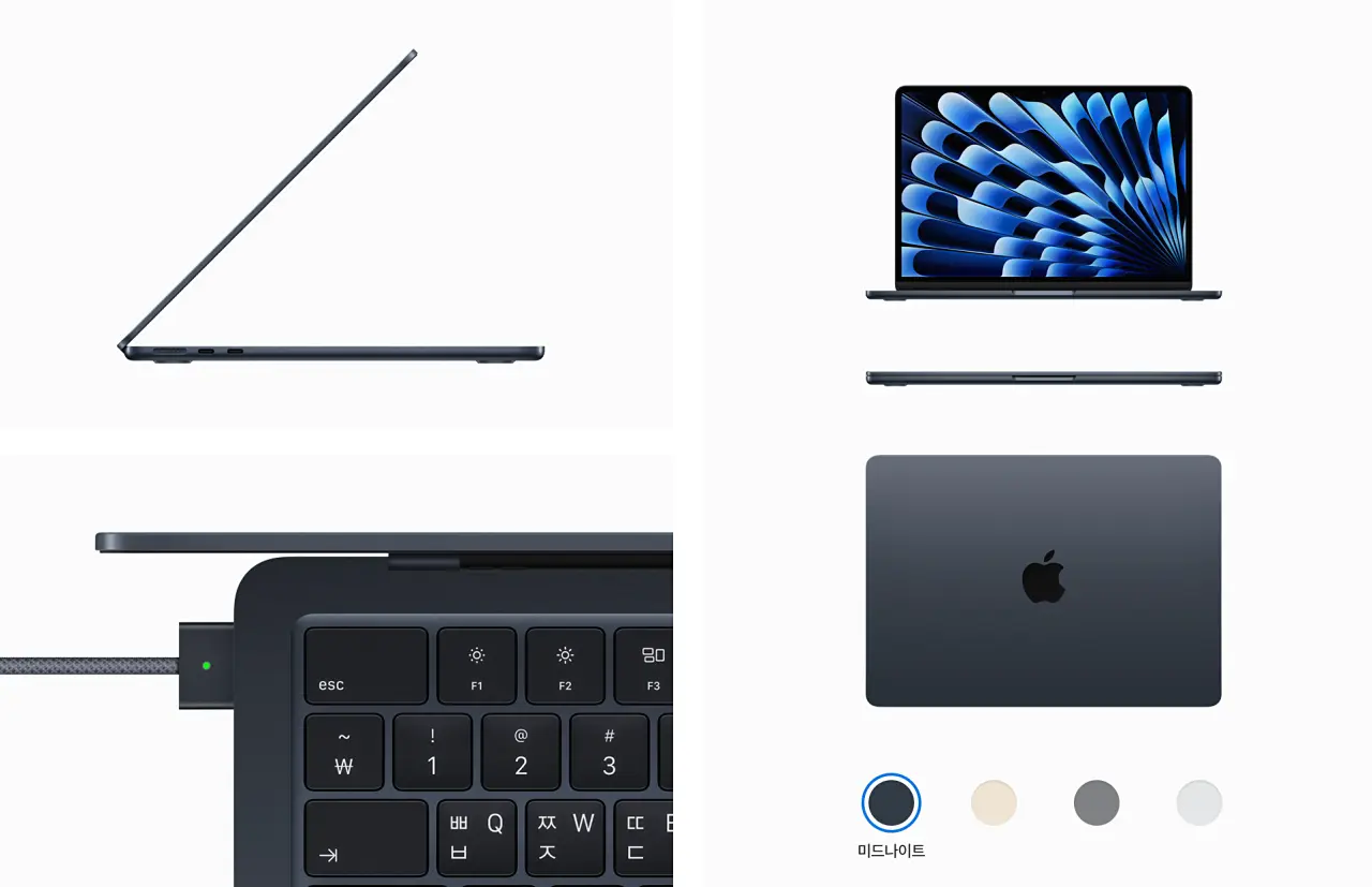 블로그, 워드프레스, 웹서핑을 주로 하고 초고화질 동영상 편집이 주가 아니라면 가성비 노트북으로는 맥북에어 M2 15인치 모델이 가장 적합하지 않을까 생각 됩니다.