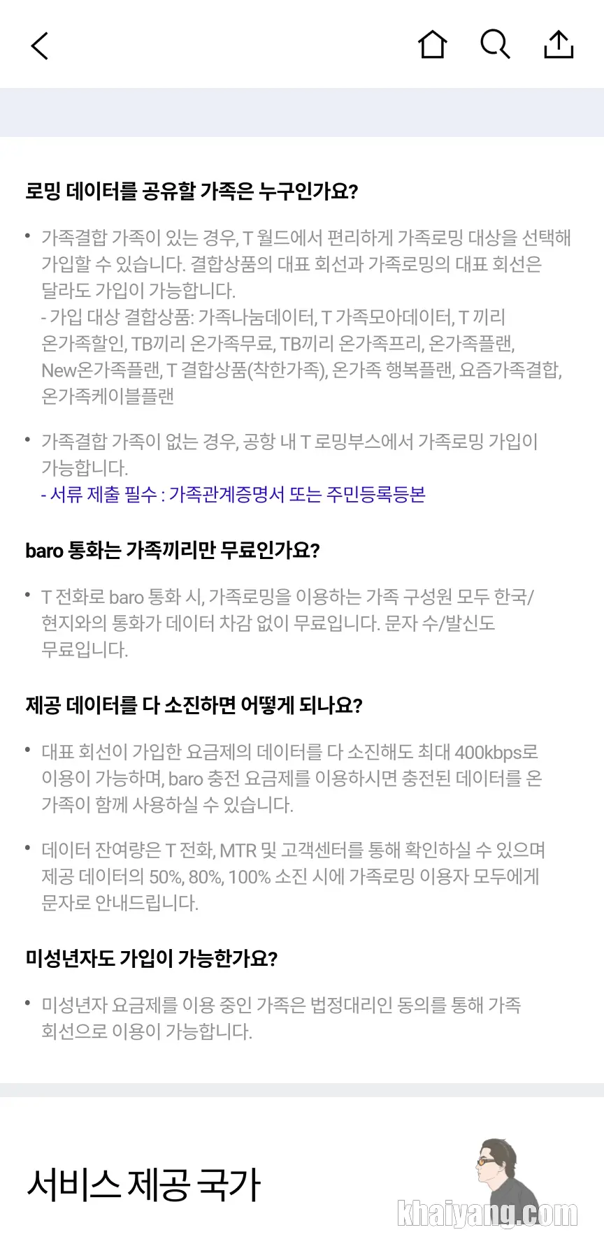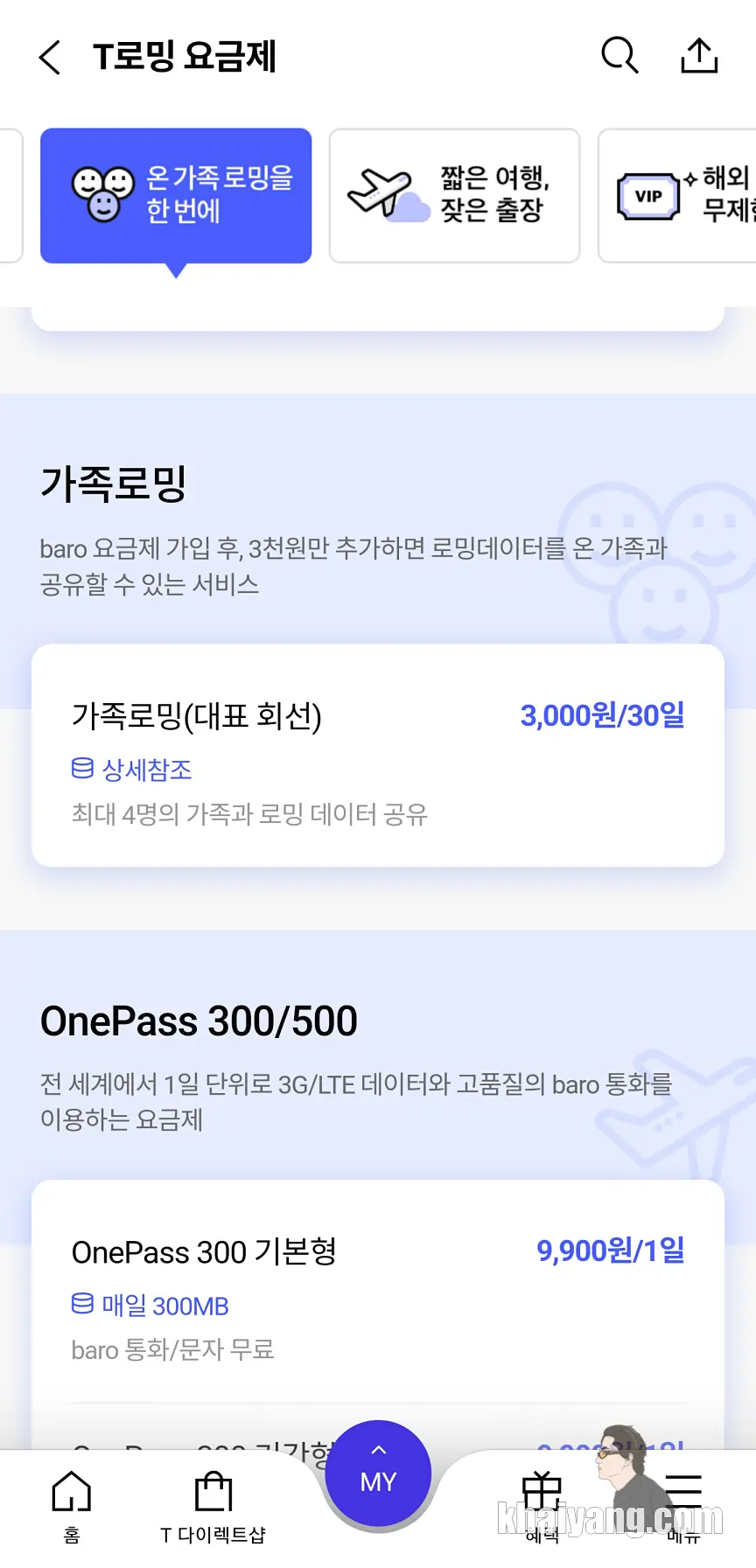 가족 로밍 상품은 웹에서는 안되고 'T모바일 앱' 에서만 신청이 가능한 점 참고 하시기 바랍니다.