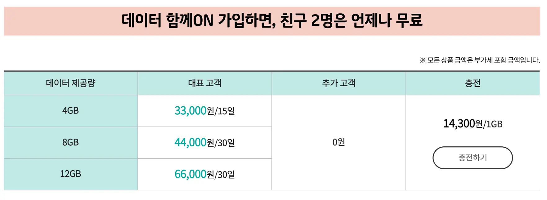 데이터를 공유하려면 3명 모두 KT 가입자여야 하고, 출국 전에 사전 신청을 마쳐야 한다고 합니다.
