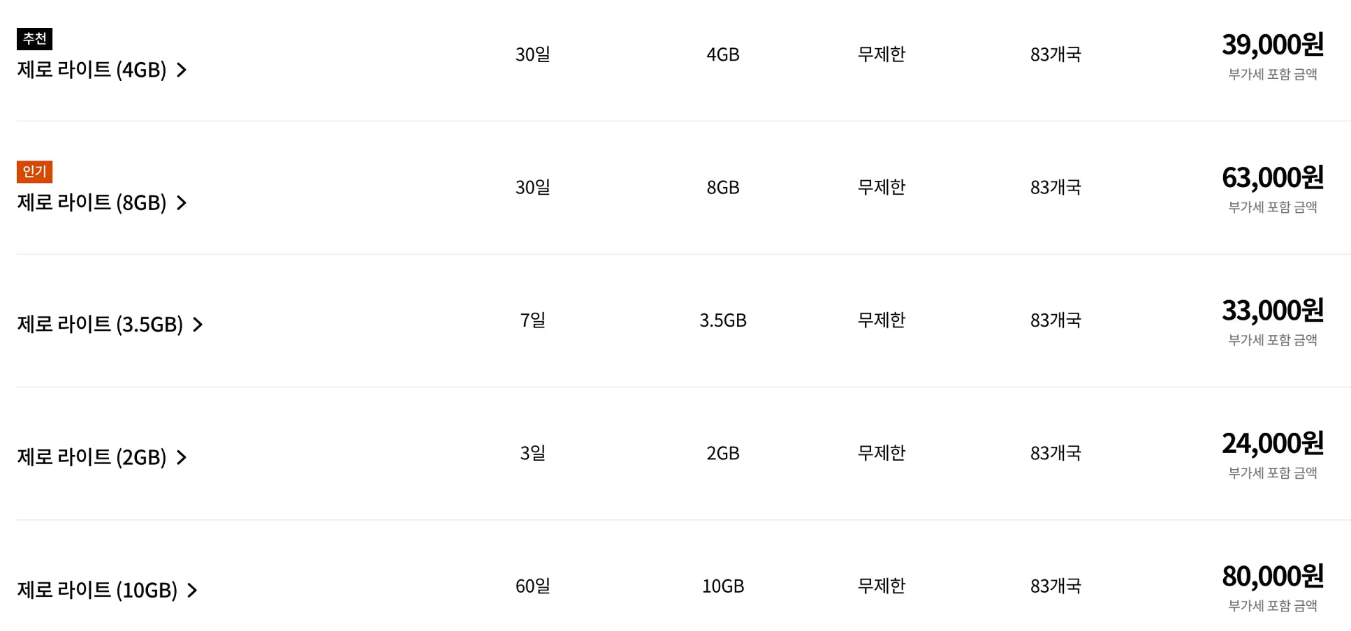 국내 로밍 상품은 사실 가성비에서 너무 뒤쳐지기에 아마도 현지 유심을 많이들 사용했을 겁니다. 저역시 현지 유심 상품을 선택했던적이 많았습니다.