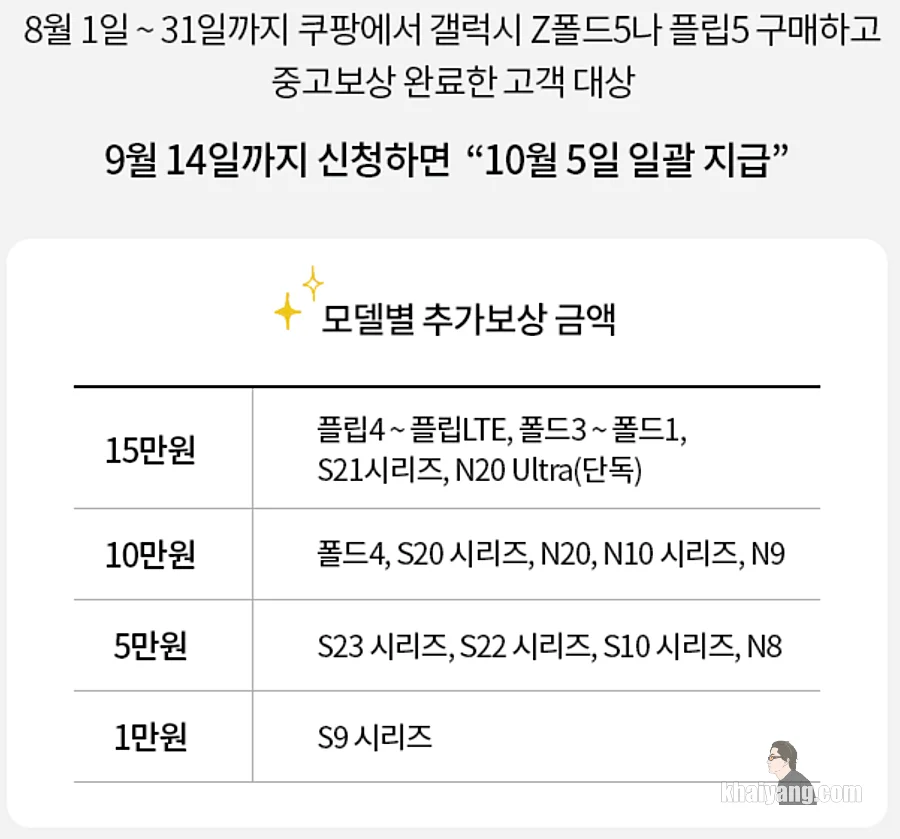 중고보상 프로그램은 삼성닷컴이 내세우는 차별 포인트인데 쿠팡에서도 비슷한 이벤트를 진행 중이니 한번 살펴 보시는 것을 추천 드립니다.
