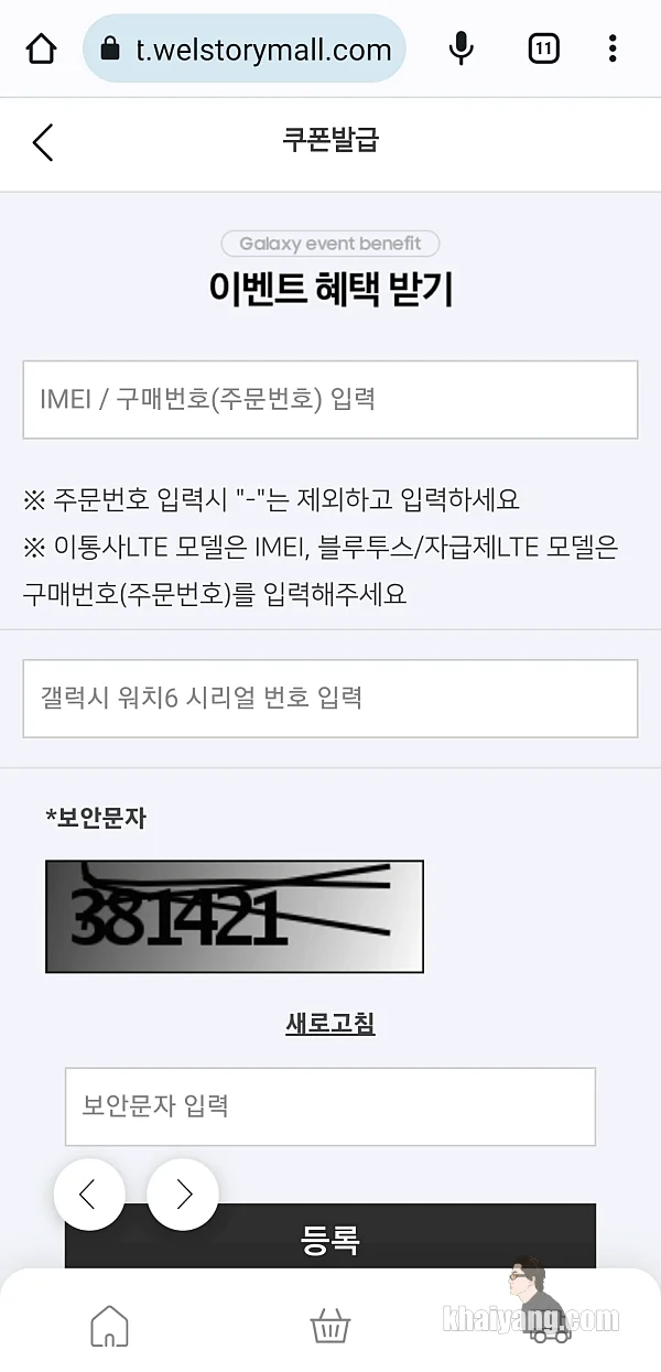 마지막으로 보안문자를 입력하고 등록 버튼을 눌러 주세요.