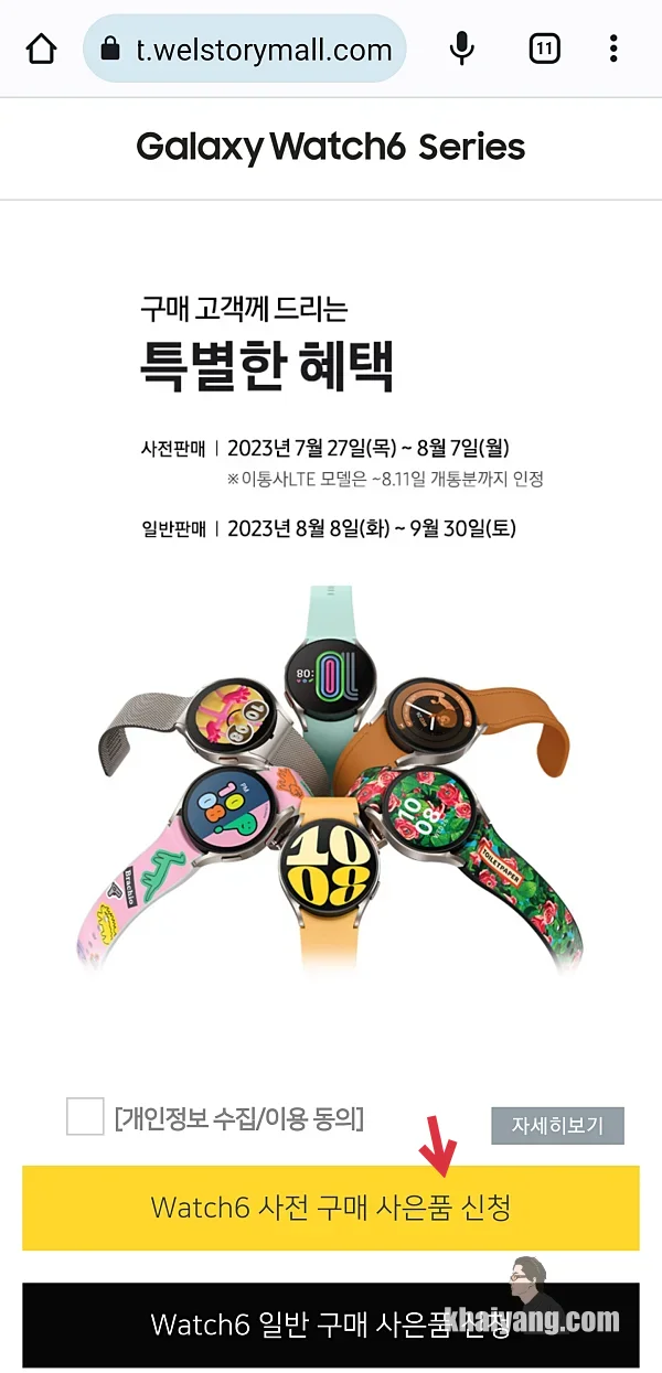 갤워치6 사전구매 사은품 신청 항목을 터치 합니다. 일반 구매자 같은 경우 하단의 검정색 배너를 터치 하시면 됩니다.