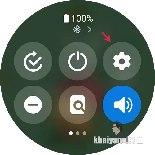 갤럭시워치 화면에서 상단 부분을 손가락으로 아래로 쓸어 내리면 위 사진과 같은 빠른 설정창을 확인할 수 있습니다.