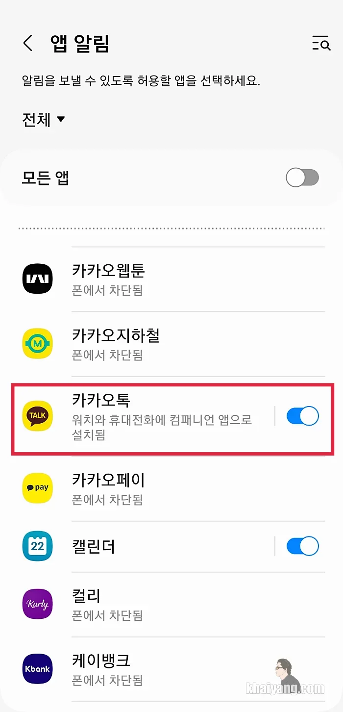 갤럭시워치6 카카오톡(카톡) 알림 안 올때 세팅 방법