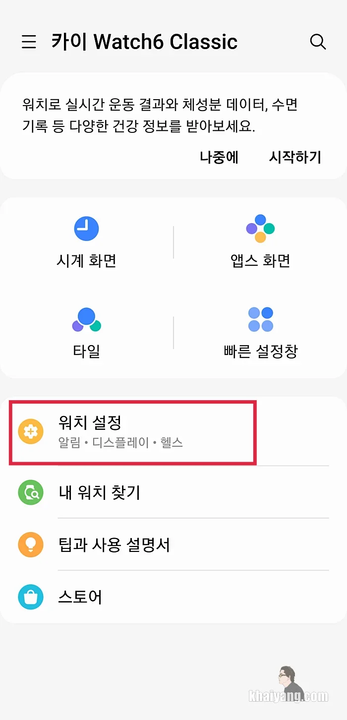카카오톡 앱과 갤럭시 웨어러블 앱에서의 설정도 모두 마쳤습니다. 다음은 갤럭시워치6 앱에서 설정해야 할 부분을 살펴 보겠습니다.