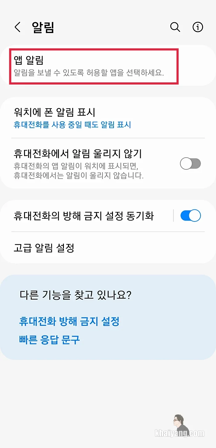 앱 알림 항목을 선택 합니다.
