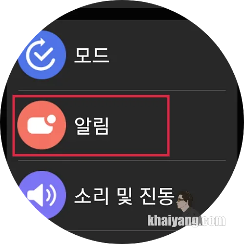 이 항목을 선택 하시면 알림을 받는경우 워치 화면이 켜져서 바로 알림 내용을 확인할 수 있습니다.