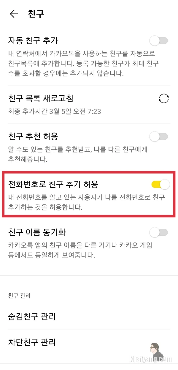 카카오톡 사생활보호 업데이트! 전화번호 친구 추가 옵션 설정하기