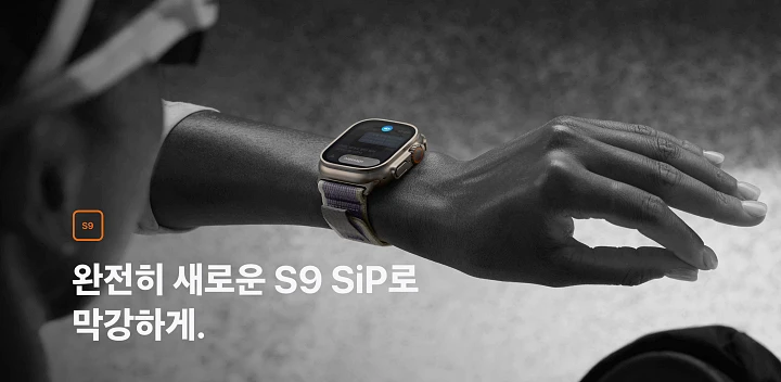 애플워치9 시리즈는 새로운 애플 실리콘인 'S9 SiP' 칩이 탑재되었고, 새로운 4코어 뉴럴 엔진을 탑재해 애플워치8 대비 2배 빨라진 머신 러닝 작업 처리 속도를 자랑합니다.