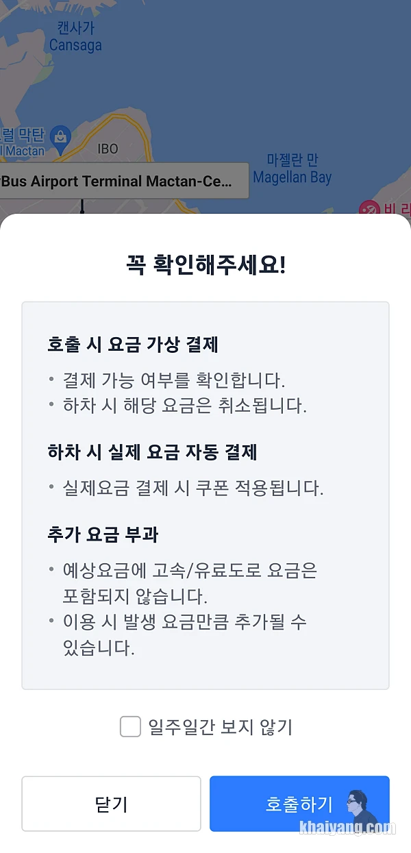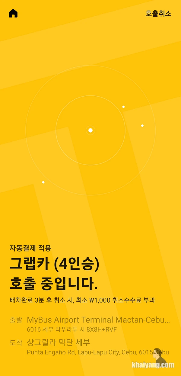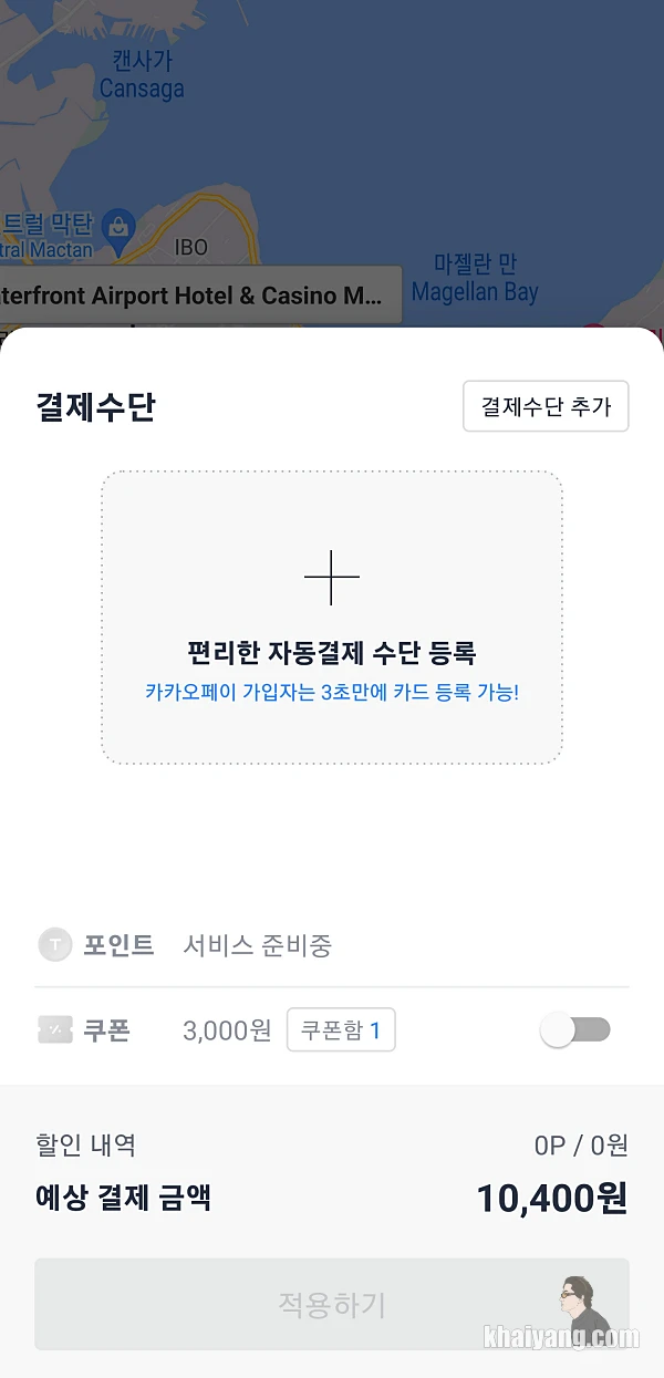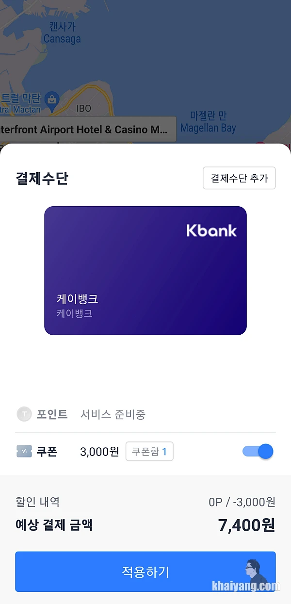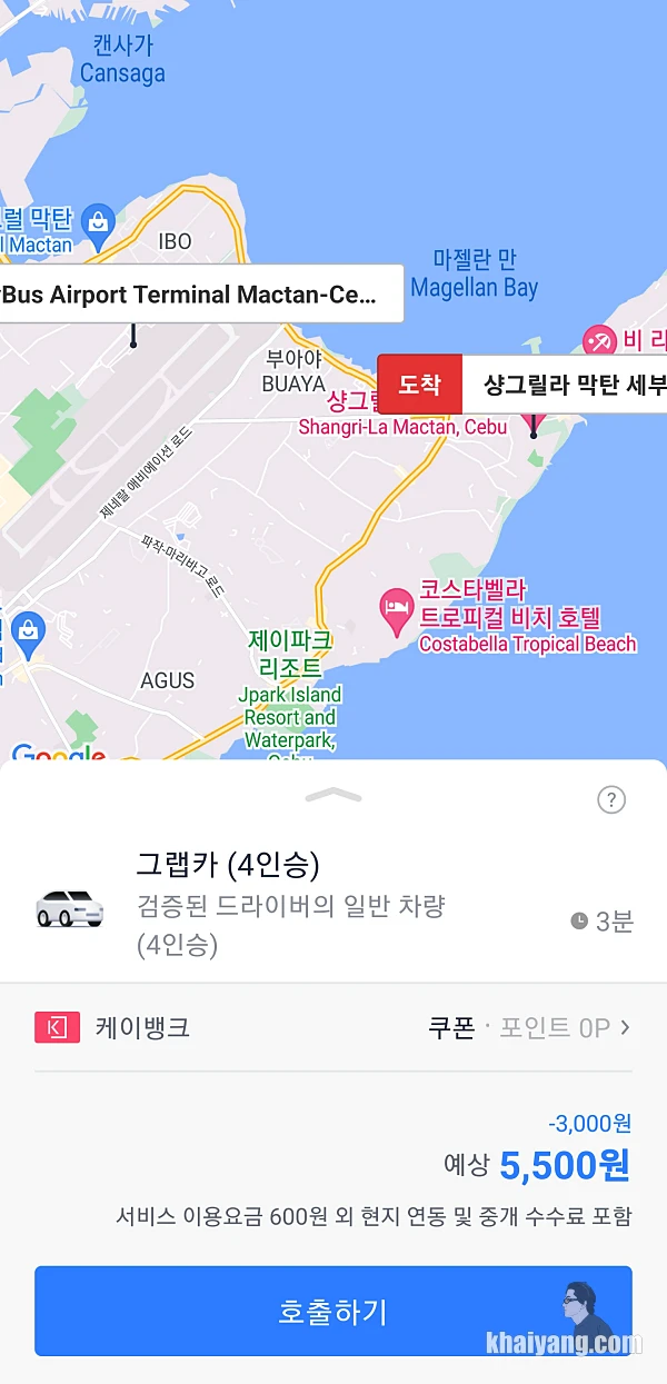 그랩을 한번도 이용해 본적이 없기에 이번에는 친숙한 카카오택시로 막탄 공항에서 샹그릴라까지 갈 계획을 세웠습니다. 그리고 중요한 것은 카카오택시에서 제가 가는 여행기간동안 해외이용 이벤트가 있어서 3천원 쿠폰을 무료로 주었다는 사실!