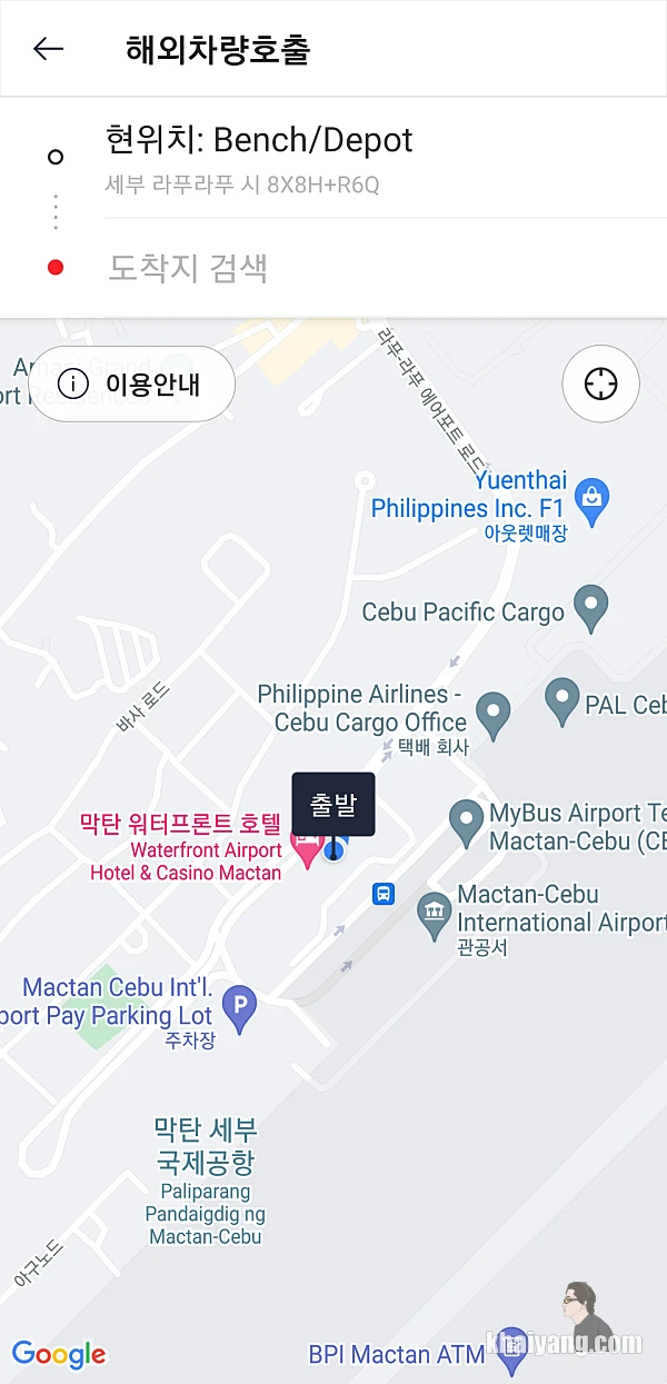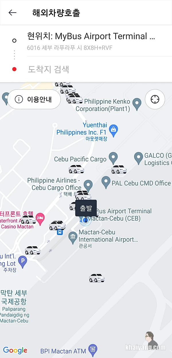 세부 가시는 분들은 공항에서 꼭 이 곳에서 그랩카, 카카오T를 호출하시기 바랍니다. 위치에 대한 별 다른 설명이 필요가 없어서 좋았습니다.