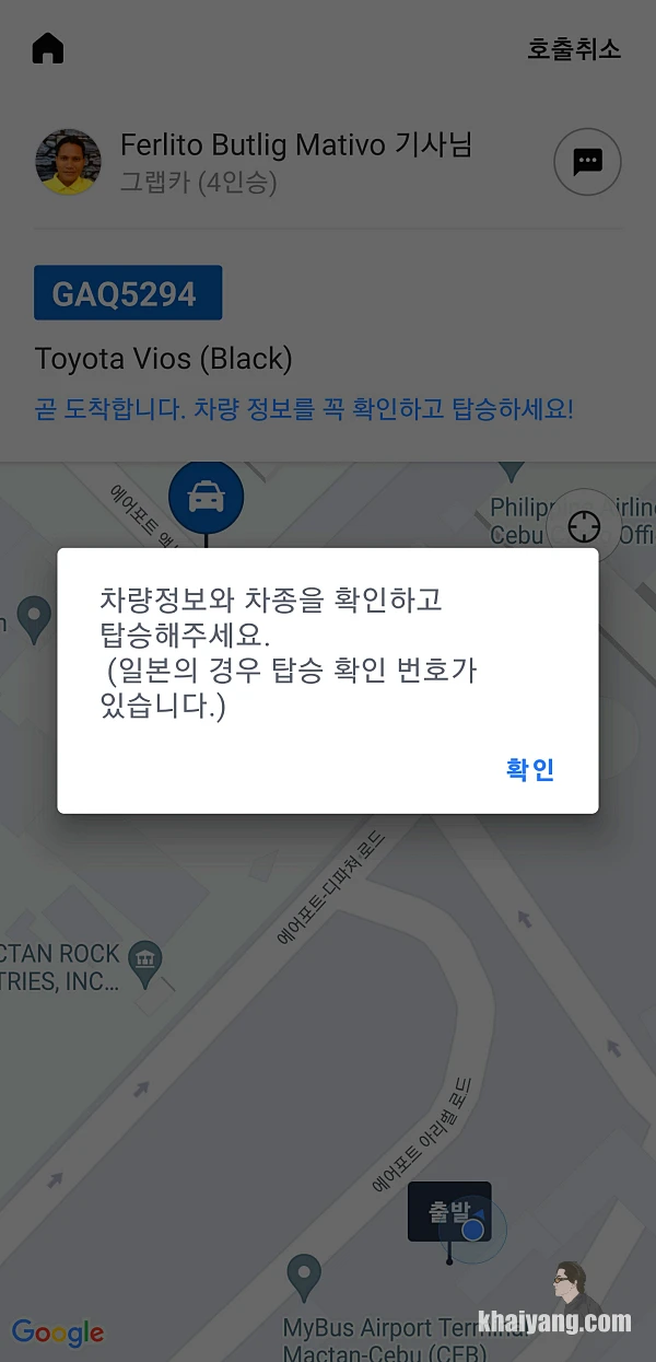 꼭 확인해야 할 것은 차종과 차 번호로 여기서 나온 차량이 아니라면 절대 탑승 하시면 안됩니다. 만약 다른 차를 타게 되면 납치의 위험이 있기 때문에 반드시 차량과 번호판 넘버를 확인 하시기 바랍니다.