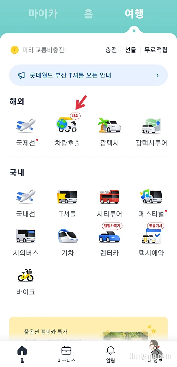해외 항목에서 차량호출을 선택 합니다.