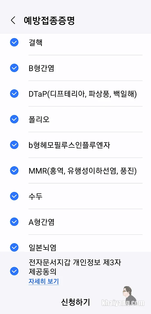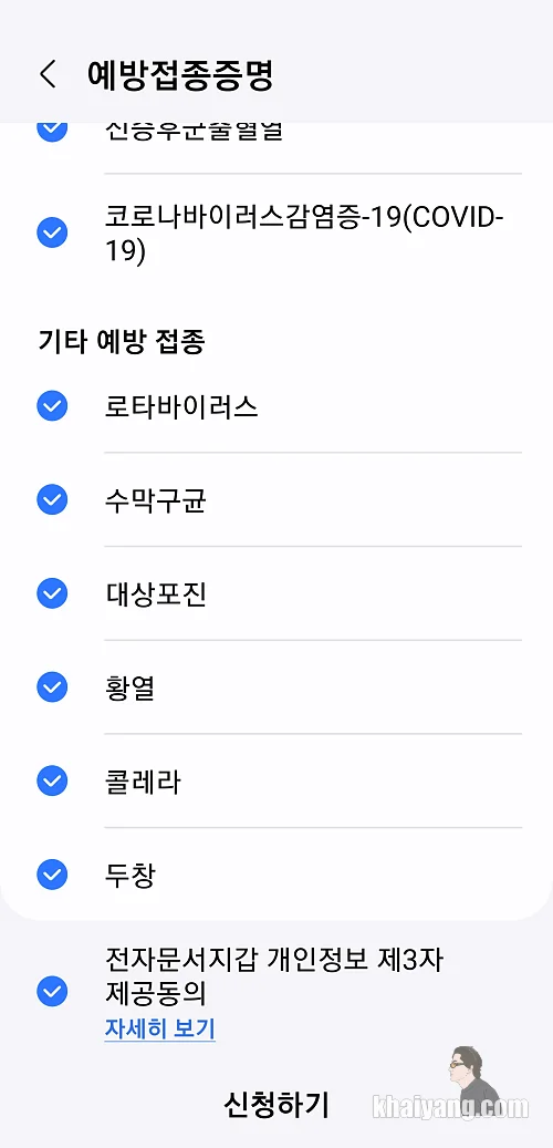 살펴보니 B형 감염, 결핵 등 상당히 다양한 예방접종을 한방에 확인할 수 있었습니다. 코비드 감염증명서도 받을 수 있게 되어 있는데 1년 일찍 나왔더라면 좀 더 큰 인기를 끌었을 것 같습니다.