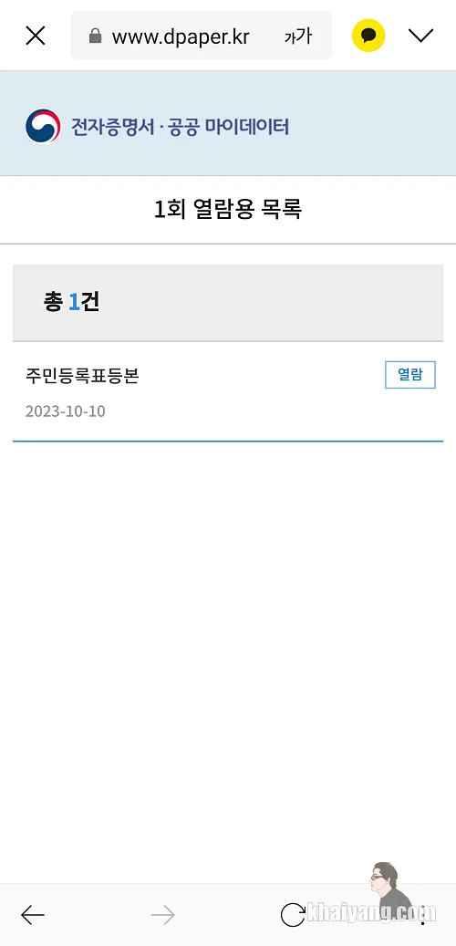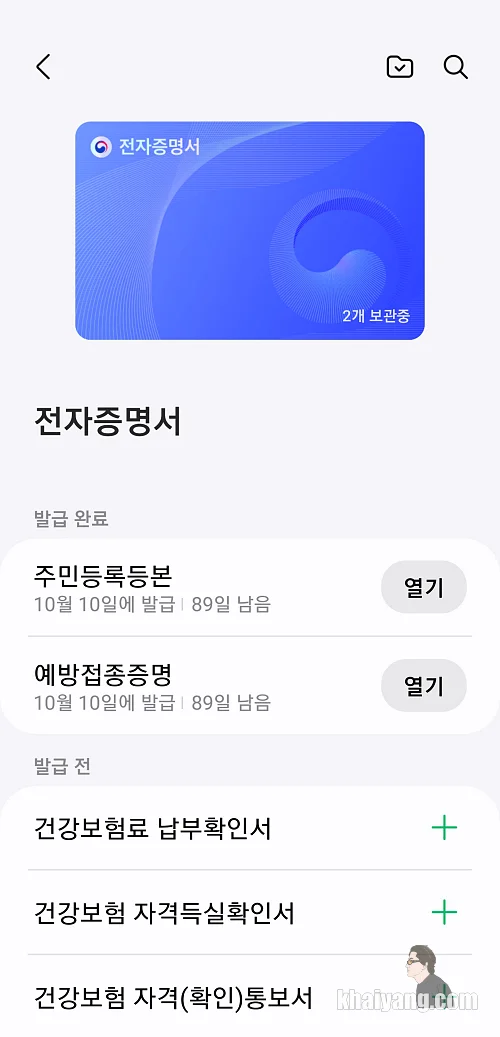 삼성페이 전자증명서를 열어보면 발급받은 증명서를 바로 확인할 수 있습니다.