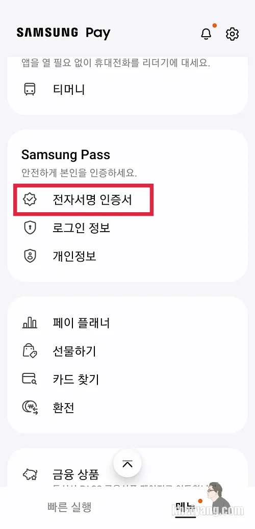 다른 곳에서도 전자증명서 발급을 받으면 되지만 즐겨 사용하는 삼성페이도 전자증명서 서비스를 지원하면서 더욱 편리해졌습니다.