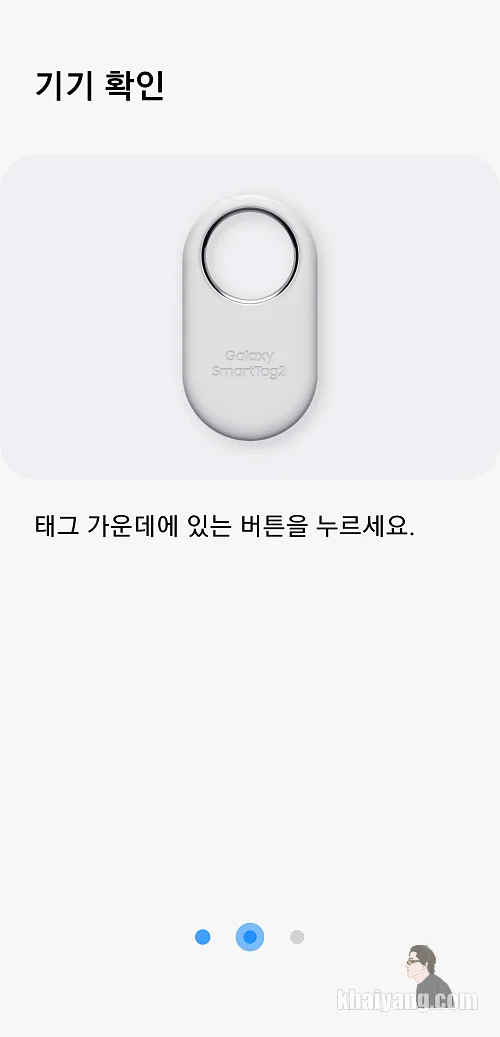 중간에 기기확인을 위해서 태그 가운데 버튼을 누르라고 하는데 그때 가운데 버튼을 누르시면 됩니다.