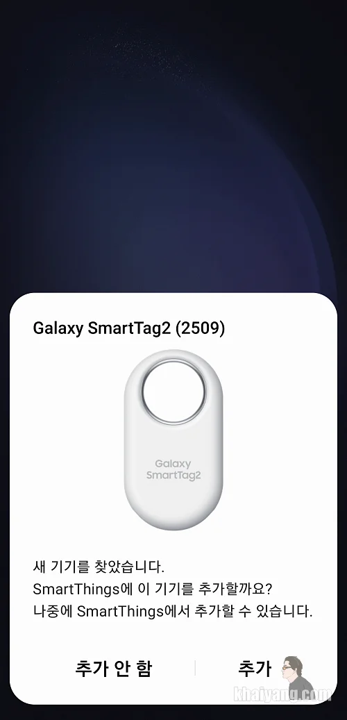 새 기기를 찾았다는 팝업 창이 뜨면서 스마트 싱스에 기기를 추가할 수 있습니다.