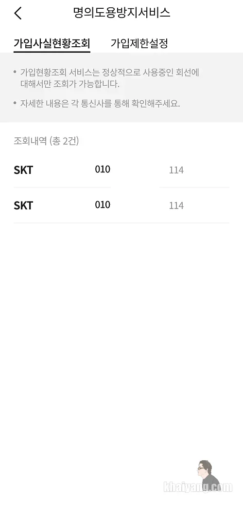 조회를 해보니 다행스럽게 제가 가입한 것만 나와 있고 저 몰래 가입된 전화번호는 없었습니다.