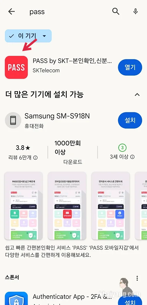 저는 SKT 사용자라서 SKT 패스앱을 다운 받아서 사용했습니다. KT, LGU+ 사용자들은 사용하고 있는 통신사의 패스앱을 다운 받고 설치해서 사용하실 수 있습니다.