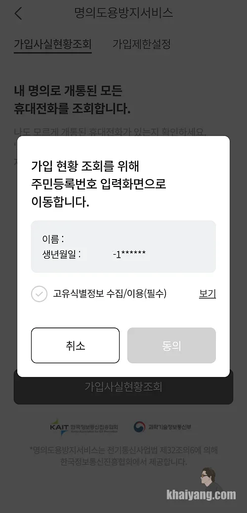 내 명의로 개통된 휴대전화가 있는지 한번 찾아 보겠습니다.