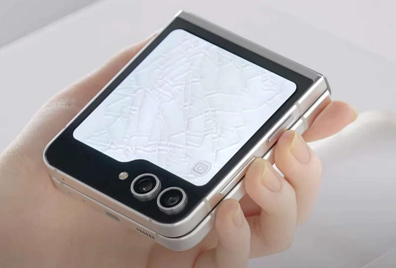 이전 모델인 갤럭시Z플립4 대비 2배 가량 커진 외부 화면(플렉스 윈도우)에도 역시나 느낌있는 바탕화면을 보여주고 있습니다.
