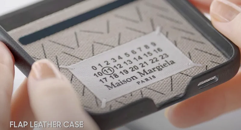 메종 마르지엘라 디자인이 적용된 고급스러운 느낌의 플립 레더 케이스 입니다.