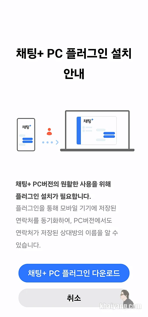그러면 채팅+ PC 플러그인 설치 안내 화면이 나오는데, 여기서 하단에 있는 채팅+ PC 플러그인 다운로드를 합니다.