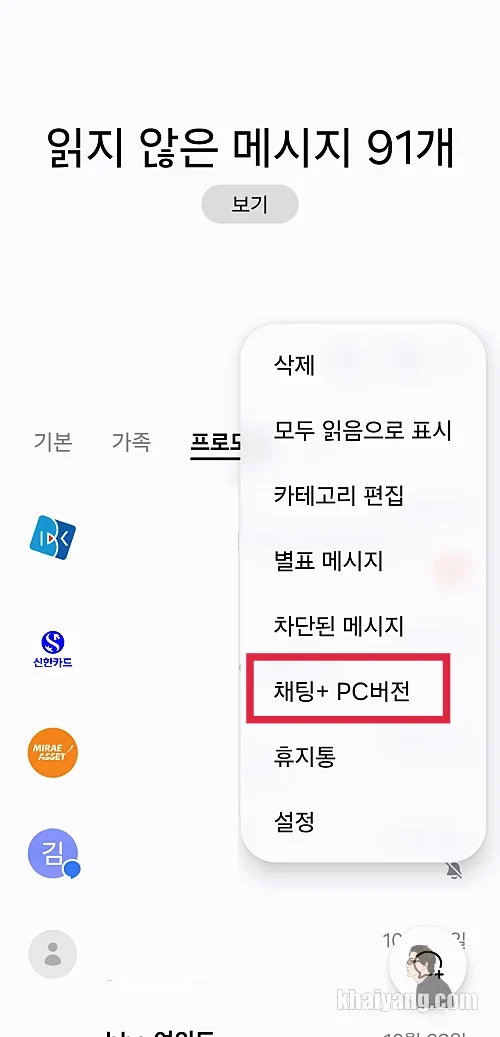 메뉴 중에서 채팅+PC버전을 선택 합니다.