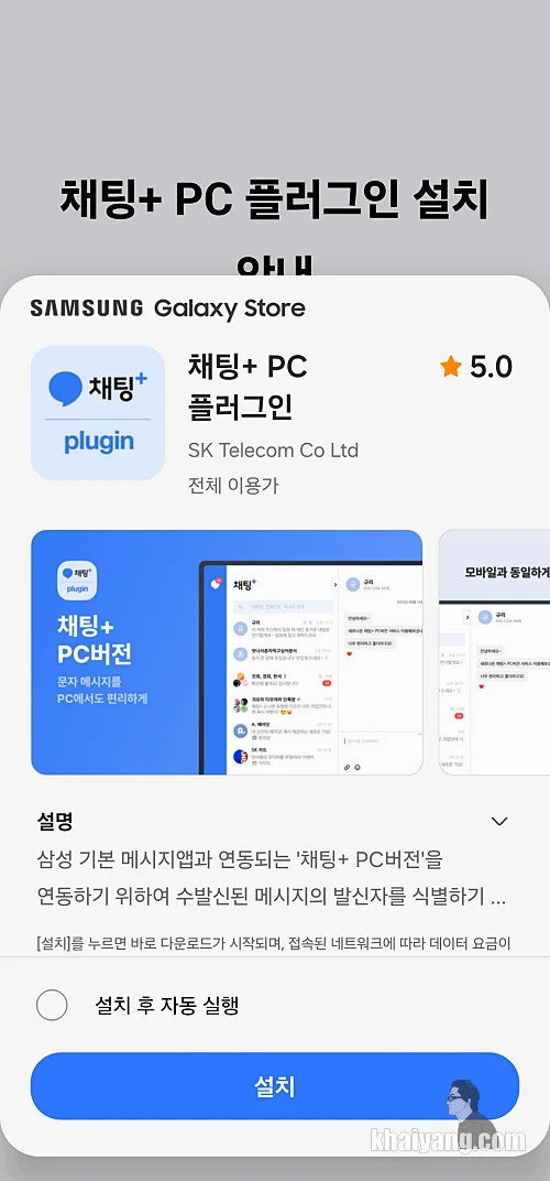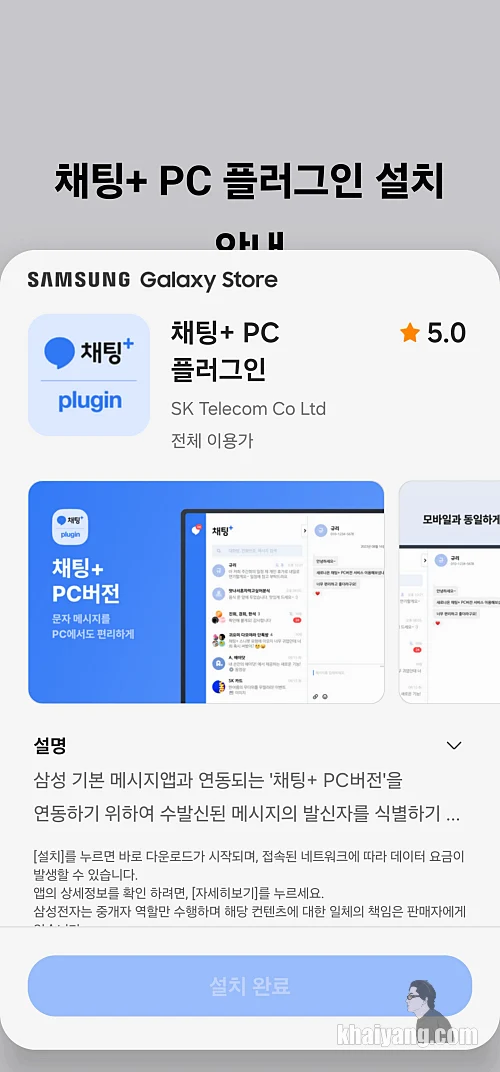 갤럭시 스토어에 있는 채팅+PC 플러그인을 설치 합니다.