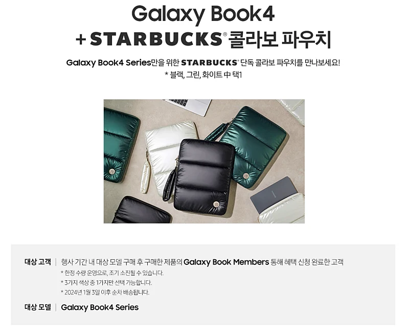 이 외에도 ‘마이크로소프트 오피스 Home & Student’가 제공되며, 스타벅스와 단독으로 협업한 노트북 파우치가 한정 수량으로 증정됩니다.