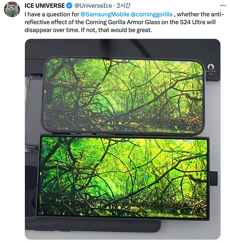 평소 X 에 서식하며 갤럭시 욕 많이 하기로 유명한 아이스유니버스도 갤럭시S24울트라 전면 유리에 대한 폭풍 칭찬을 하고 있을 정도 입니다.