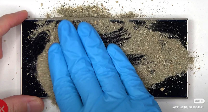 측면이나 바디는 케이스로 보호를 하기 때문에 괜찮은데 생폰으로 썼을때 전면 보호를 얼마나 해주는지가 궁금 했습니다. 테스트 영상에서 보니 모래를 올려놓고 비비는 극한의 테스트를 하더군요.