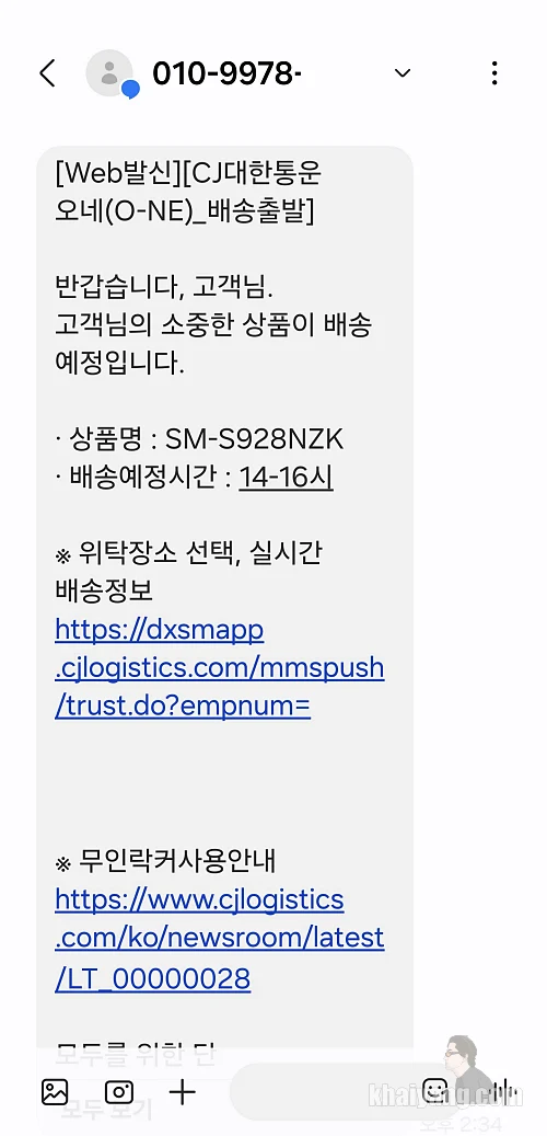 글을 쓰고 있는 가운데 반가운 문자가 왔네요. 저는 오늘 도착할지 안 할지 확신이 안섰는데 문자를 보니 오늘 오는 것 같습니다.