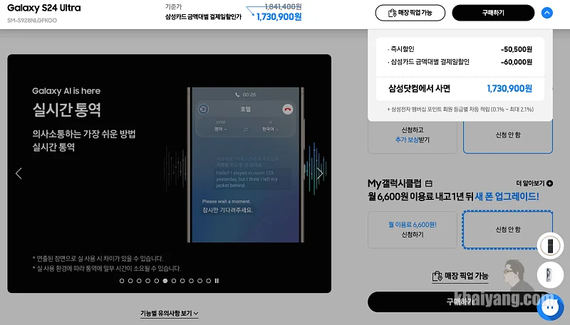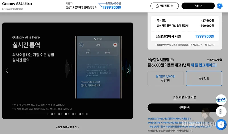 사전구매시 가격(삼성닷컴 구매 기준)