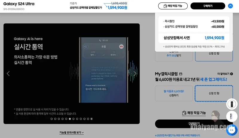 갤S24 울트라 256기가 -> 512GB 1,594,971원