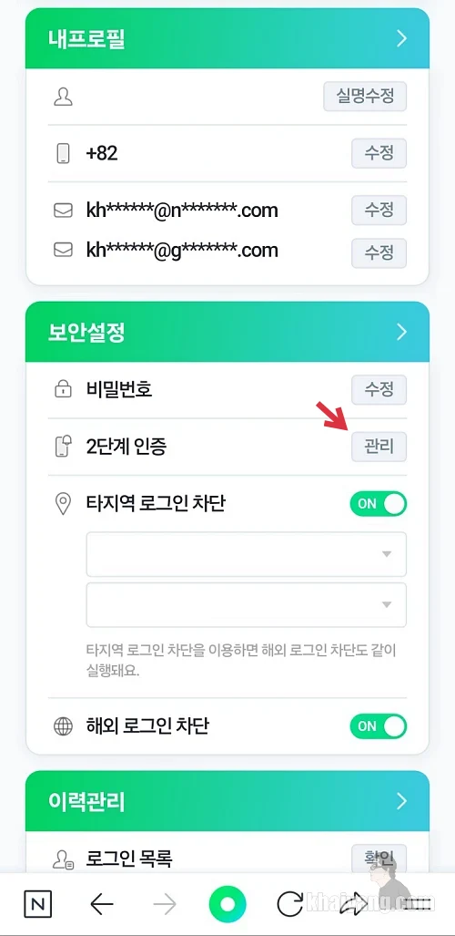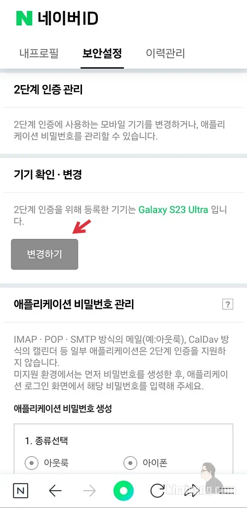 네이버 2단계 인증 기기 변경하기