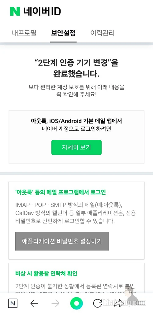 네이버 2단계 인증 기기 변경을 완료 했습니다.